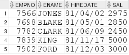 SELECT empno,ename,hiredate,sal