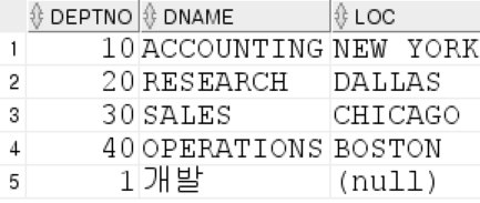 INSERT INTO dept (deptno,dname) VALUES (1,'개발');