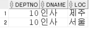 부서번호와 지역을 쌍으로 비교하기 때문에 부서번호가 같아도 지역이 다르면 입력되는 것을 확인할 수 있습니다.