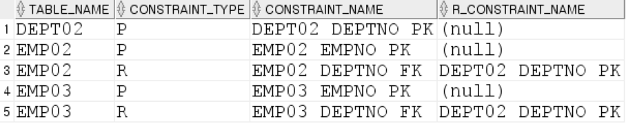 WHERE table_name IN('DEPT02','EMP02','EMP03');