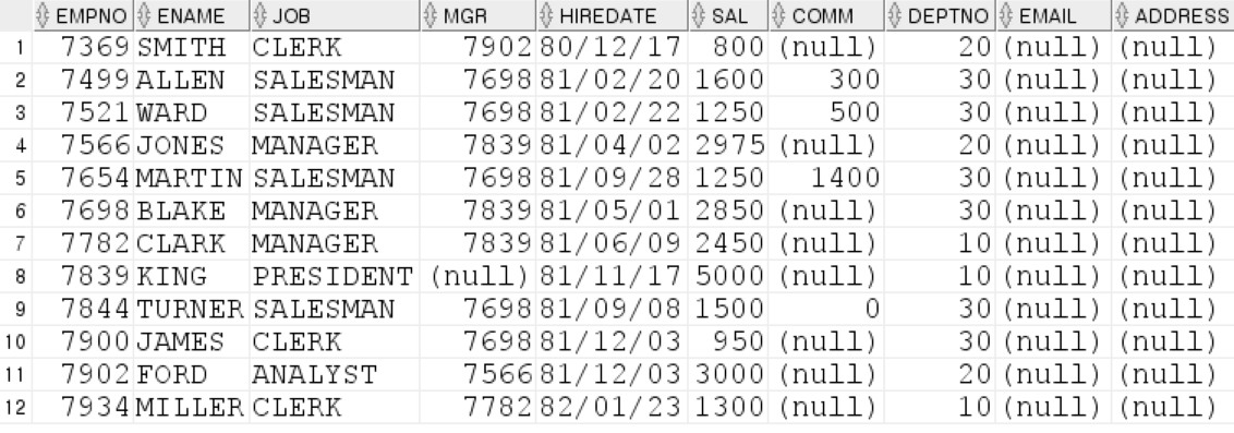 emp04 테이블에 문자 타입의 이메일과 주소 컬럼을 추가해 보겠습니다.