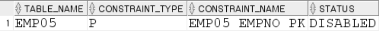ALTER TABLE ENABLE | DISABLE 문을 사용하여 제약 조건을 필요에 의해 활성화하거나 비활성화할 수 있습니다.