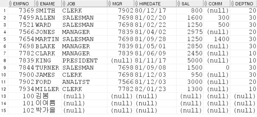사원들의 사원 번호가 시작값인 100부터 순차적으로 자동 넘버링된 것을 볼 수 있습니다.