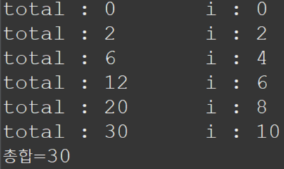 * for문을 사용하여 1부터 10까지 짝수 합계 구하기