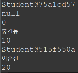 System.out.println(stu1); //생성된 객체 주소가 stu1에 저장됨