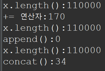 System.out.println("+= 연산자:"+(System.currentTimeMillis()-start));