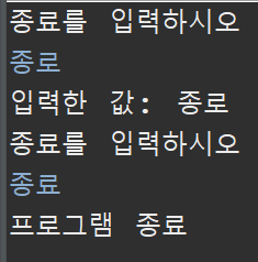 if (str.equals("종료")) break; //빠져나감