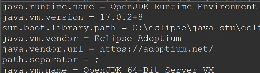 Properties를 이용해서 시스템 환경변수 값을 출력할 수 있습니다. 자바 프로그램이 돌아가고 있는 환경을 key와 value로 얻어올 수 있습니다.