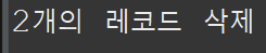 2개의 레코드가 삭제된 것을 확인할 수 있습니다.