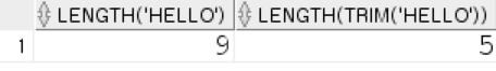 SELECT LENGTH(' hello '), LENGTH(TRIM(' hello ')) FROM dual;