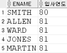 SELECT ename, SUBSTR(hiredate,1,2) "입사연도" FROM emp;
