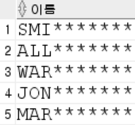 SUBSTR 함수로 첫 번째 문자부터 여덟 번째 문자까지 추출한 후 연결 연산자를 사용해 * 표시를 붙이는 방법입니다.