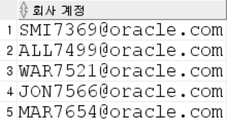 SELECT SUBSTR(ename,1,3)||empno||'@oracle.com' "회사 계정" FROM emp;