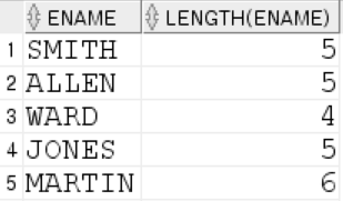 SELECT ename, LENGTH(ename) FROM emp;