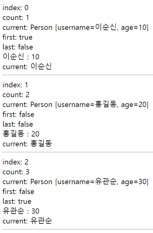 index: ${status.index} <br> <!-- 인덱스번호 -->